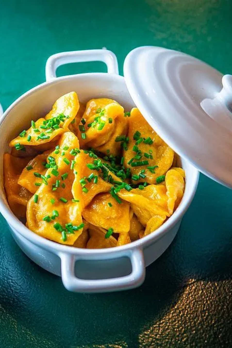 RABBIT DUMPLINGS WITH SMOKED CHEESE