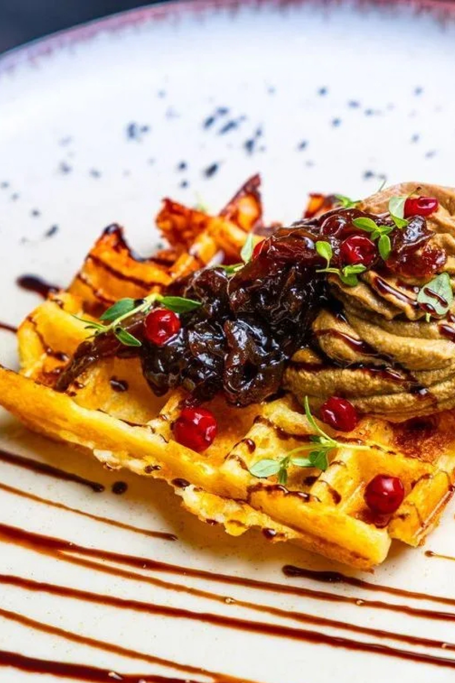 duck leg confit with mashed potatoes and wine–lingonberry sauce