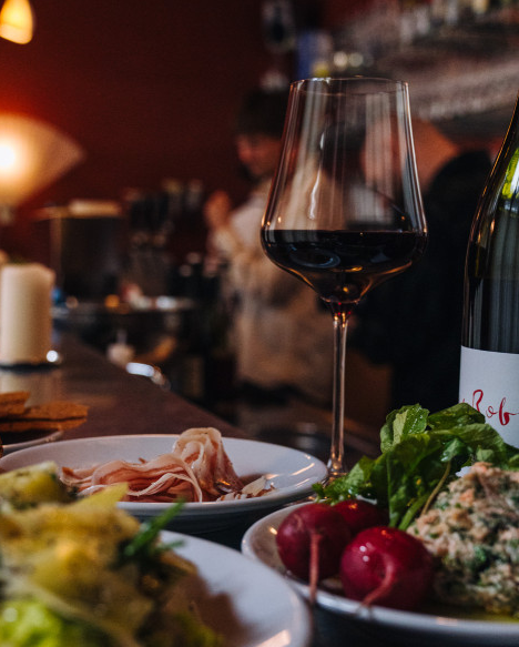 Warm snack platter – ribs, french fries, rye bread, pork ears, chicken wings